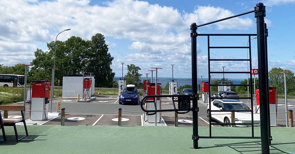 Trivsam rastplats och elbilsladdning vid Circle K Gränna Galgen